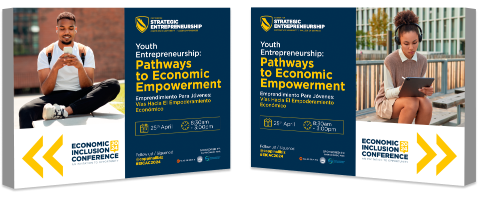 Our team crafted a modern, minimalist, and versatile brand identity for the conference. The logo seamlessly integrates the conference name, slogan, and year, allowing for easy adaptation in future iterations. We leveraged Coppin State University / Center for Strategic Entrepreneurship's established color palette to ensure brand consistency across all campaign assets.